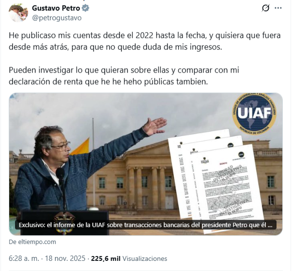 El presidente Petro publicó información bancaria como evidencia explícita de la transparencia en sus finanzas personales