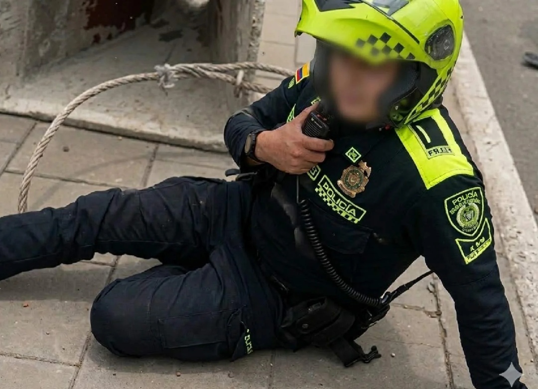 A través de un video viral en Bogotá se vio cómo la caída de una tolva dejó herido a un policía en medio de una obra en la Autopista Norte en la capital.