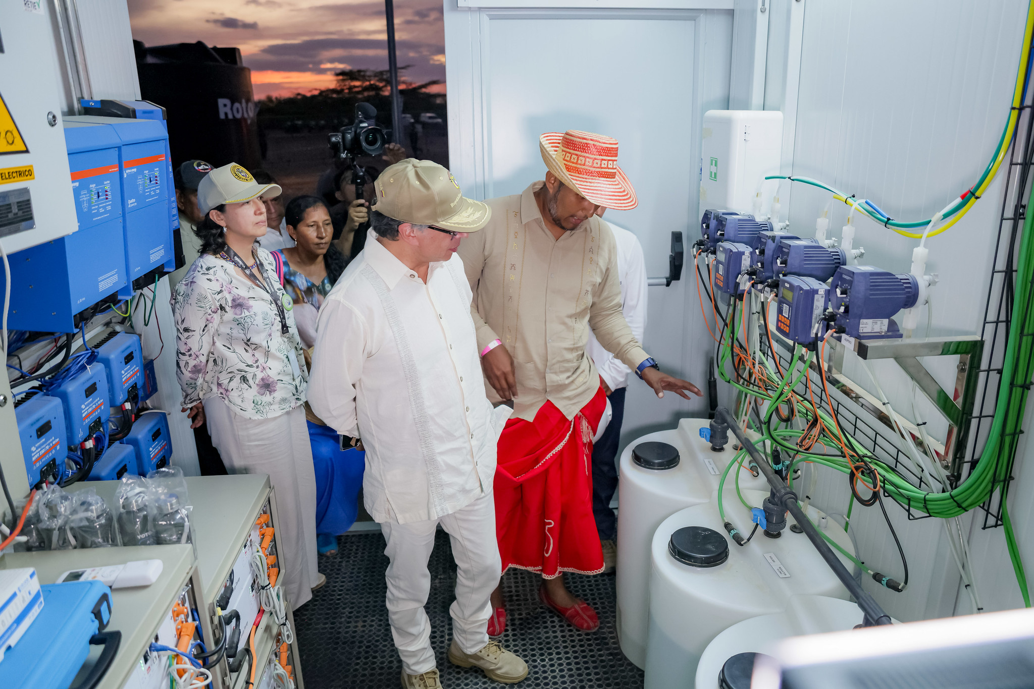 El presidente Gustavo Petro encabezó la entrega de una planta desalinizadora de agua potable en la comunidad de Yotojoroin, en zona rural de Uribia (La Guajira), como parte de la estrategia nacional para ampliar el acceso al recurso hídrico en el departamento.