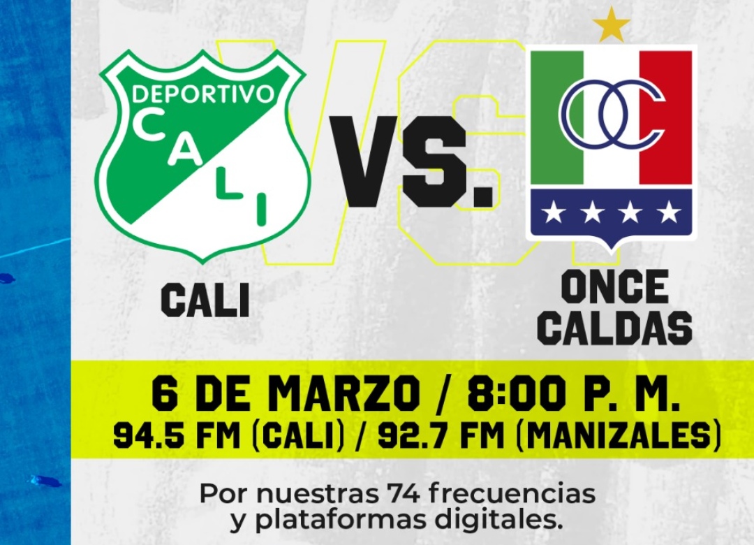 El partido entre el Deportivo Cali y Once Caldas se escuchará en vivo por las 74 frecuencias de la Radio Nacional de Colombia este viernes desde las 8:00 p. m. incluyendo los 94.5 FM en Cali y los 92.7 FM en Manizales.