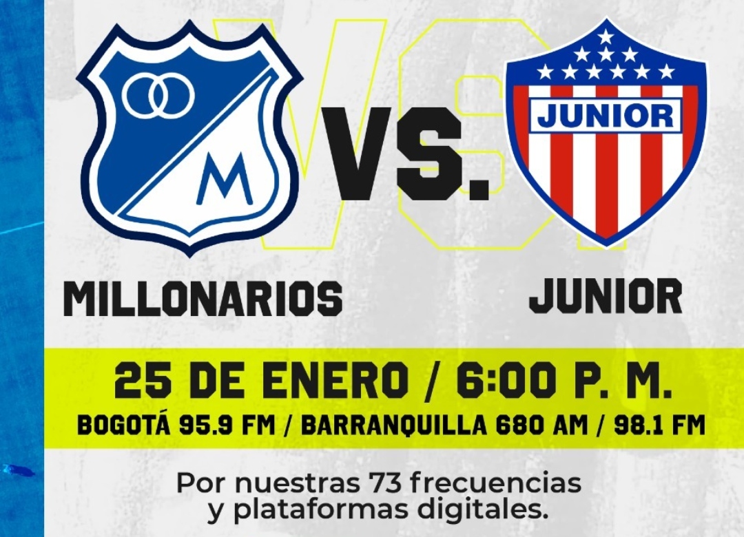 Llega una nueva fecha del fútbol profesional colombiano y con ello, las transmisiones de Radio Nacional de Colombia. Para la segunda jornada del balompié, los hinchas de fútbol podrán escuchar Millonarios vs. Junior.