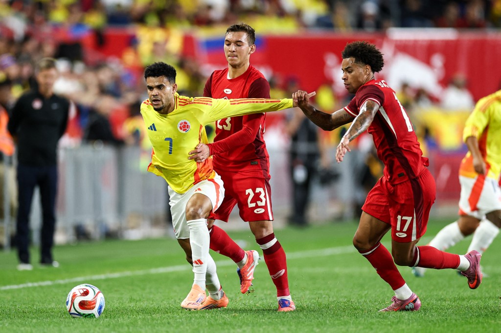 A pesar del desempeño regular en el primer tiempo, Luis Díaz desequilibró la defensa canadiense con varias acciones ofensivas. / AFP.