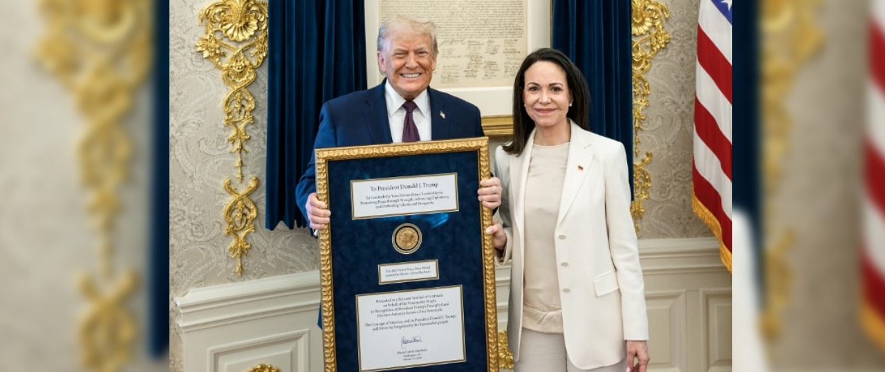 La entrega tuvo lugar durante un almuerzo privado en la Casa Blanca, a donde Machado acudió en un aparente intento por mantener abiertos los canales con el mandatario republicano, cuya postura hacia el gobierno de Caracas ha sido objeto de controversia y cambios recientes.