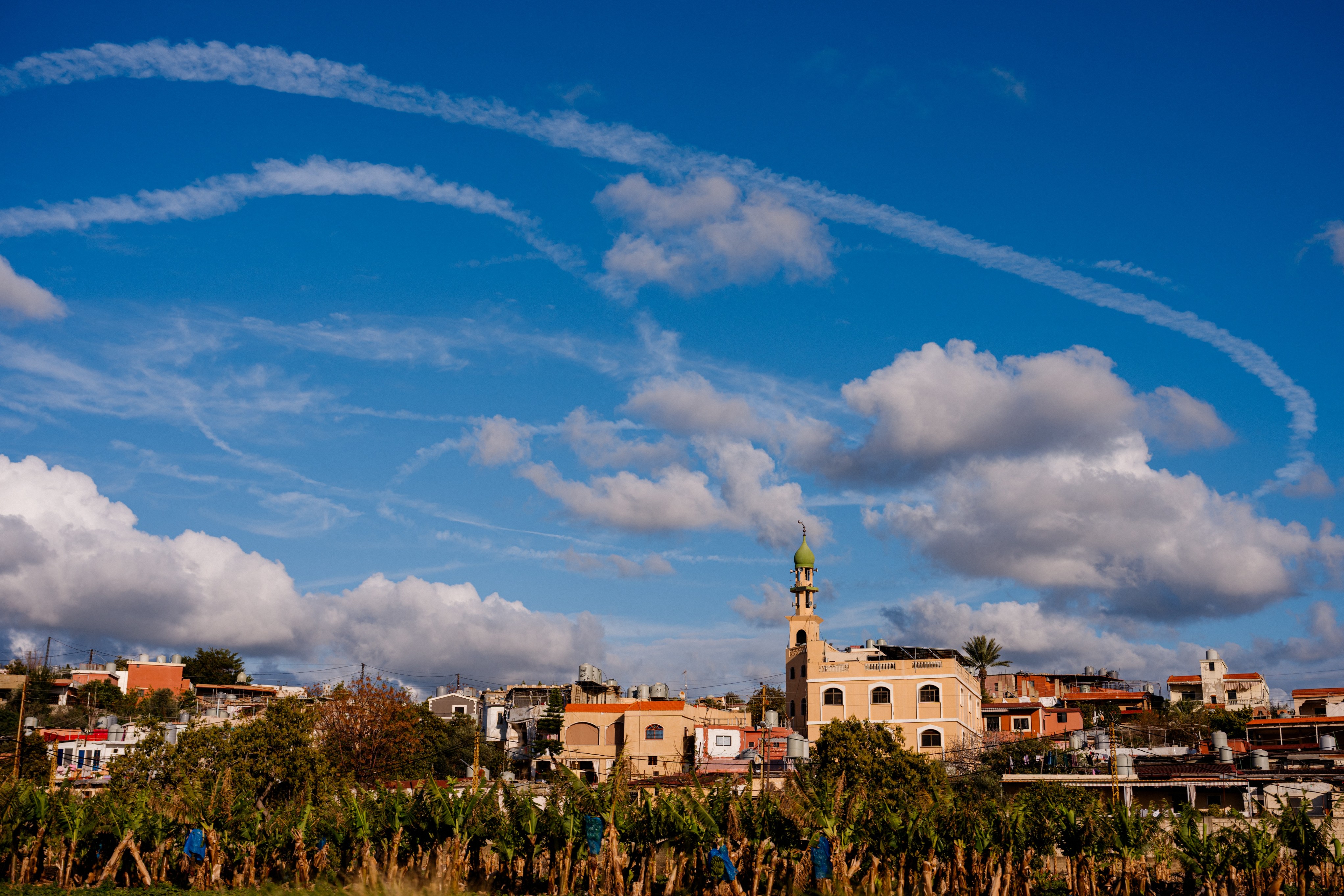 Foto: Las estelas blancas dejadas por los aviones de combate israelíes surcan el cielo sobre la ciudad costera de Tiro, en el sur del Líbano, en marzo. Foto: AFP