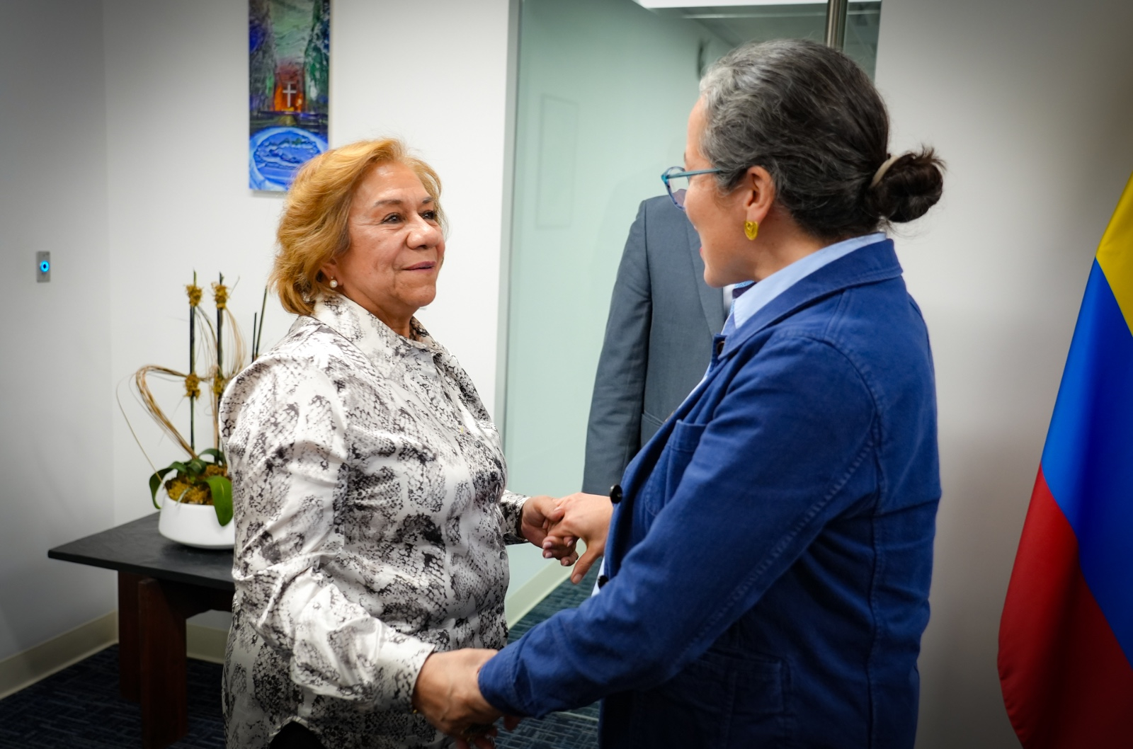 🇨🇴🤝🏻🇺🇸 Previo a la presentación del Informe Trimestral del Secretario General sobre la @MisionONUCol, la Ministra @ryvillavicencio se reunió con Ana María Archila, jefa de Asuntos Internacionales de la Alcaldía de Nueva York, para impulsar la cooperación en beneficio de la… pic.twitter.com/Qh1P600xQz