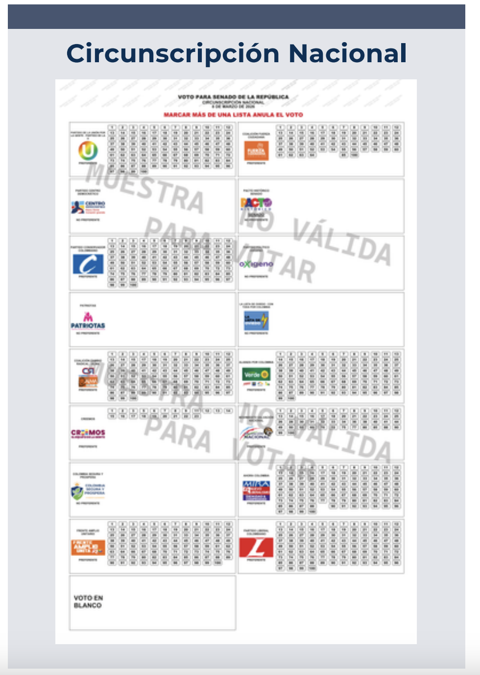Un aspecto clave que los ciudadanos deben tener en cuenta antes de ir a las urnas es que los tarjetones del Senado no incluyen nombres ni fotografías de los candidatos. Por ello, es fundamental que cada votante memorice con anticipación el nombre o número del partido y, en el caso de las listas abiertas, el número de su candidato preferido.